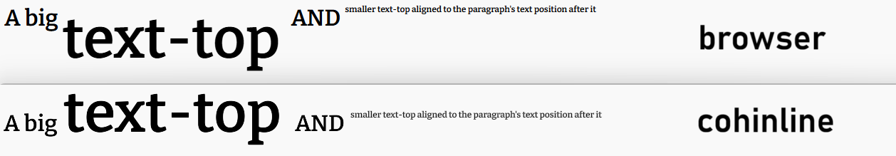 In both cases - the smaller text-top-aligned element is positioned relatively to its parent’s text.
